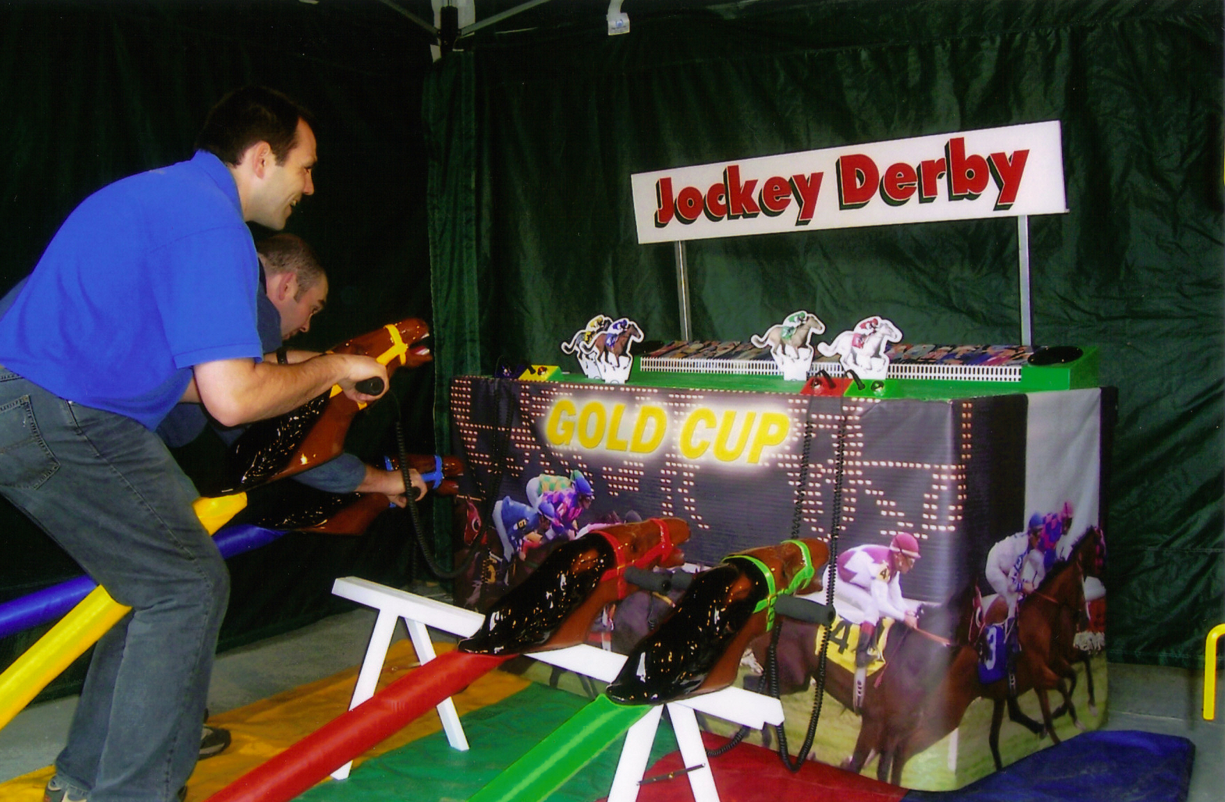 Ready to add thrilling Derby horse racing excitement to your indoor event? Contact us today for availability, tournament options, and competitive Jockey Derby Gold Cup Racing rental pricing for this unique interactive attraction!